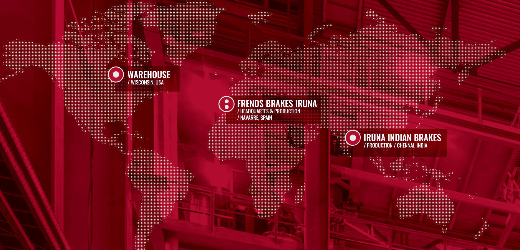 Founded in 1958 in Pamplona (Northern Spain), BRAKES IRUÑA has evolved over the years, yet always focused on the brake system industry. Nowadays the company owns more than 22.000 m² of industrial facilities distributed between Spain, India and USA.